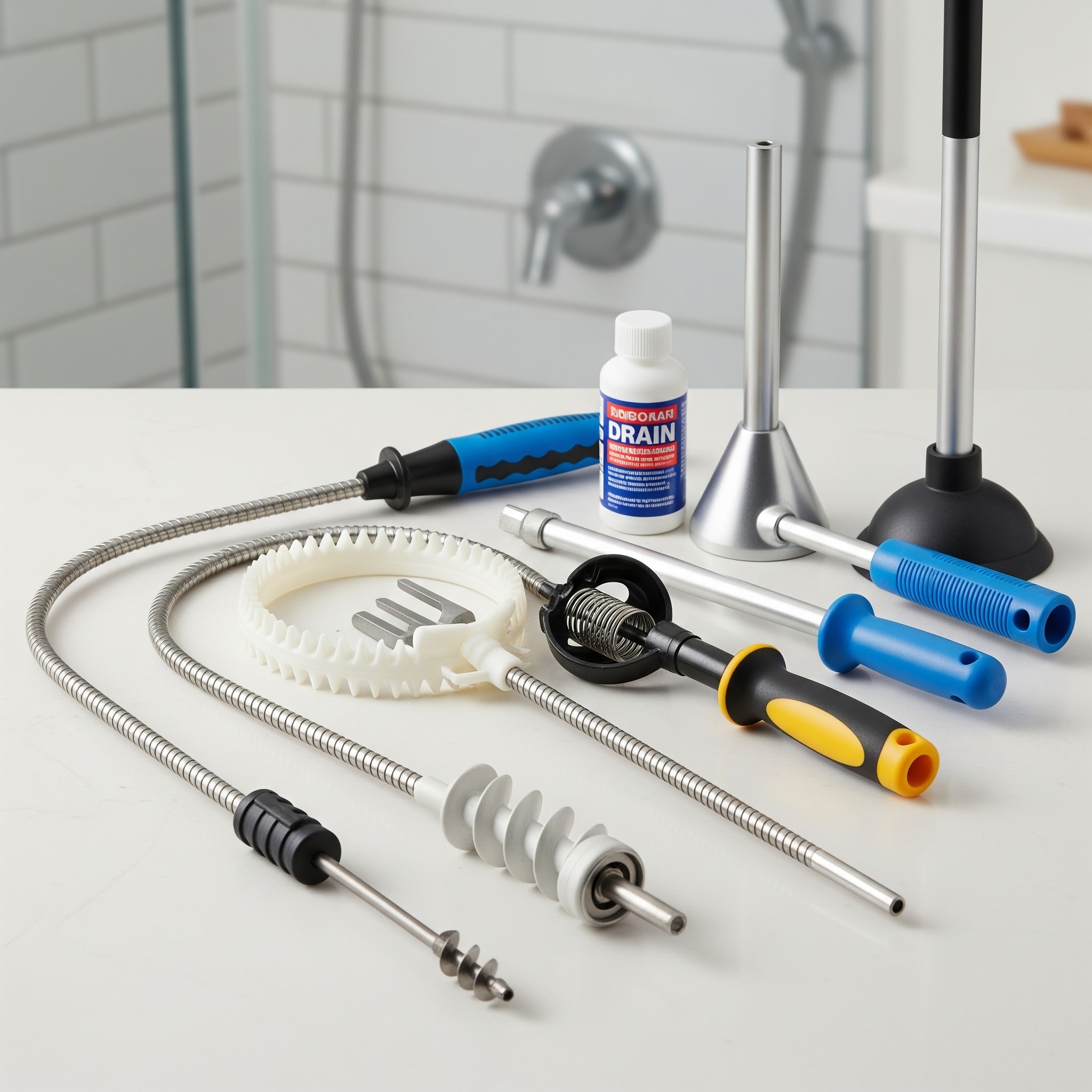 What tools are best for removing hair clogs from a shower drain?